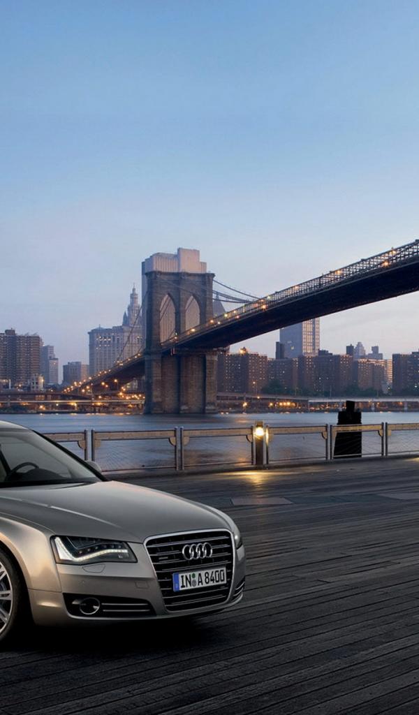 Wallpaper Audi A8 under the bridge