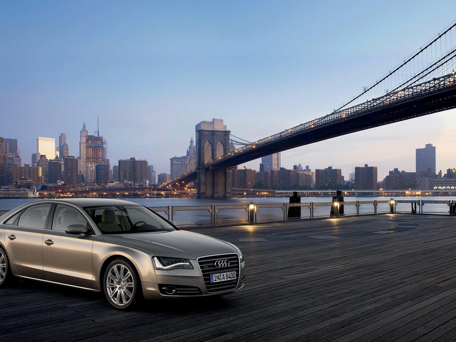 Wallpaper Audi A8 under the bridge