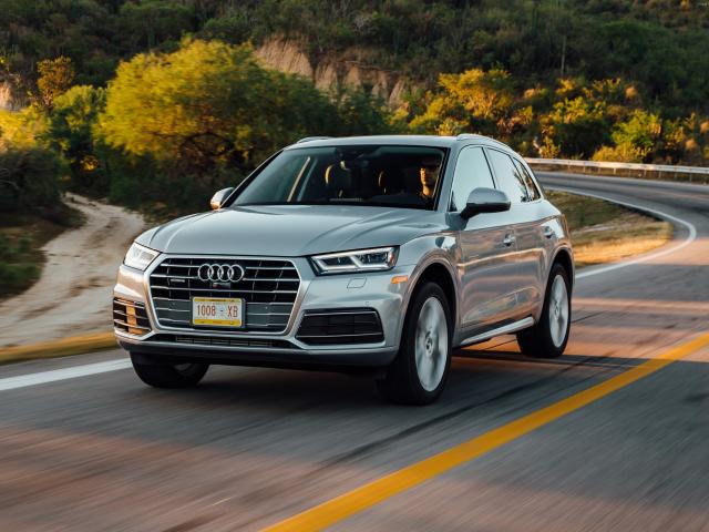 Wallpaper Silvery new car Audi Q5, 2018 on the road