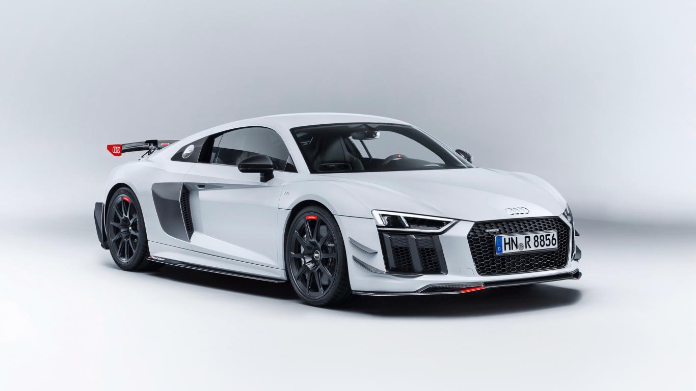 Wallpaper Sports car Audi R8 v10, 2018 on a gray background