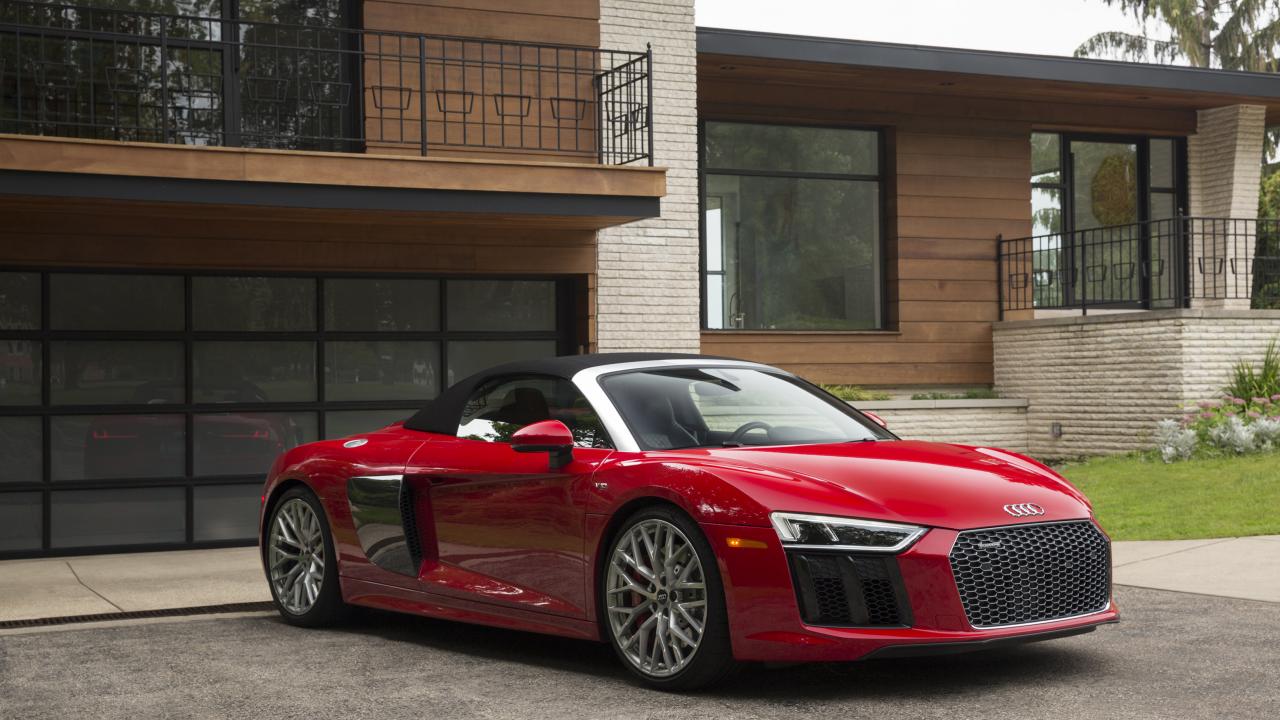 Wallpaper Red German car convertible Audi R8 Spyder V10, 2018