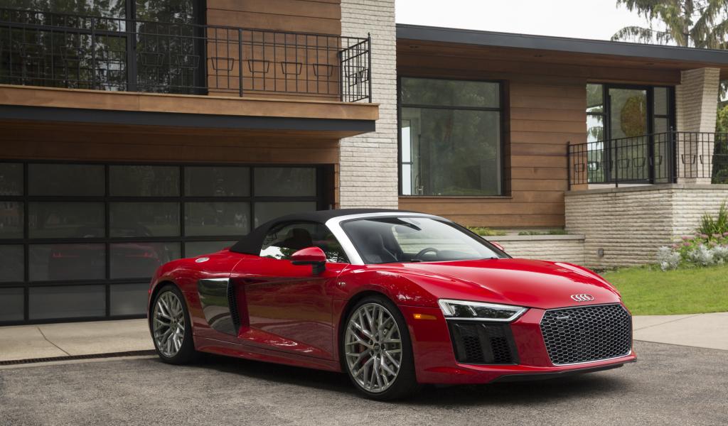 Wallpaper Red German car convertible Audi R8 Spyder V10, 2018