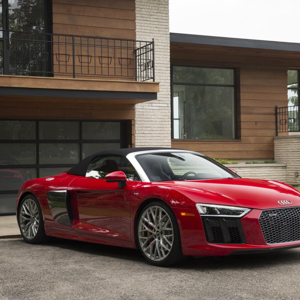 Wallpaper Red German car convertible Audi R8 Spyder V10, 2018