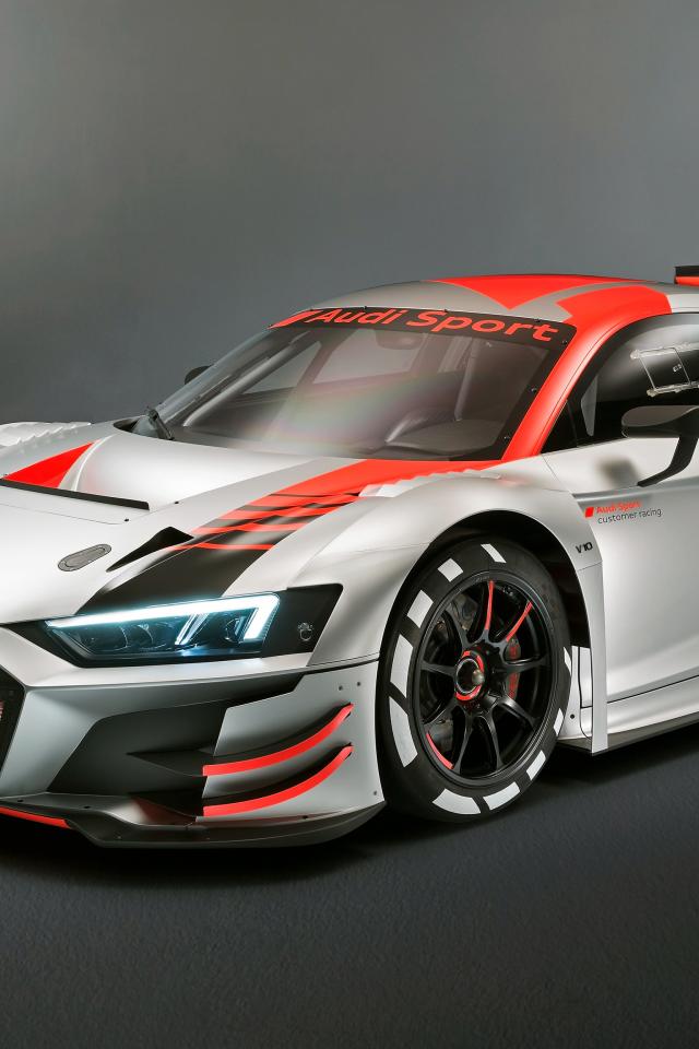 Wallpaper 2018 Audi R8 LMS sports car on a gray background
