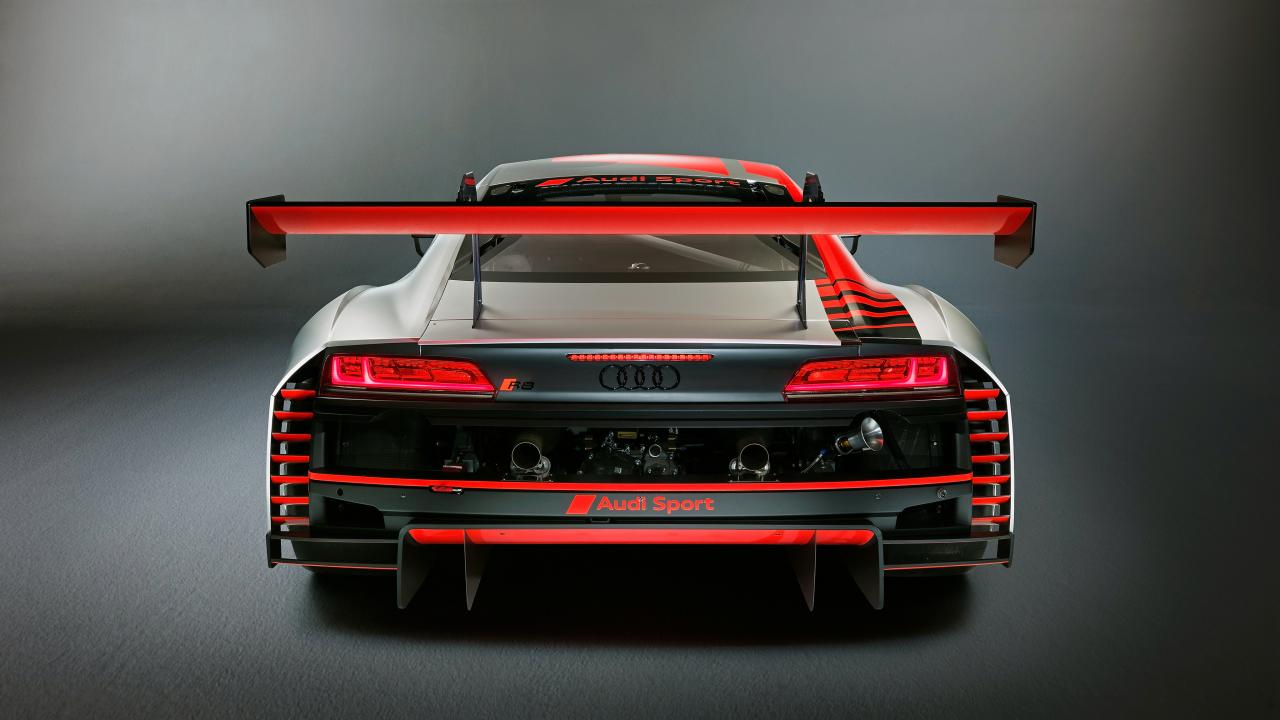 Wallpaper 2019 Audi R8 LMS sports car on a gray background rear view