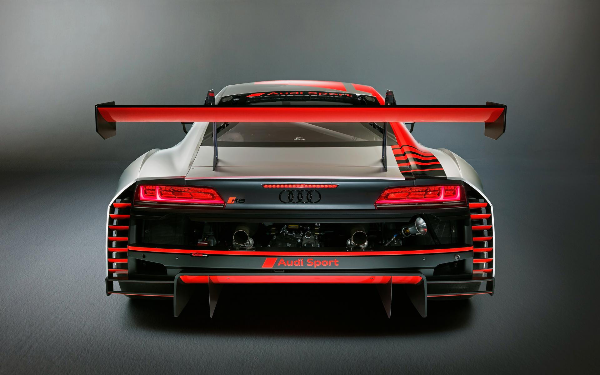 Wallpaper 2019 Audi R8 LMS sports car on a gray background rear view
