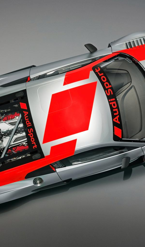 Wallpaper 2018 Audi R8 LMS sports car on a gray background top view