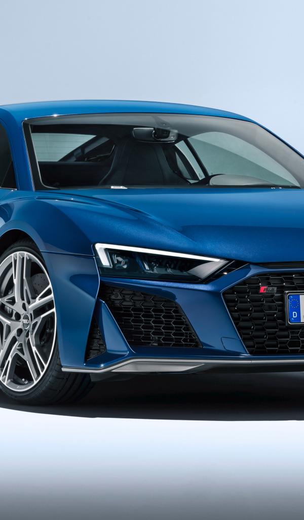 Wallpaper Blue car Audi R8 V10 2019 year on a gray background