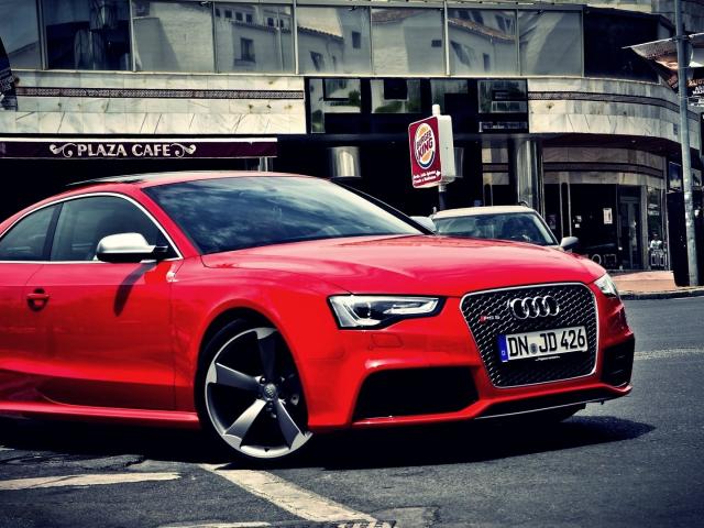 Wallpaper Red Audi RS5 at a sidewalk cafe