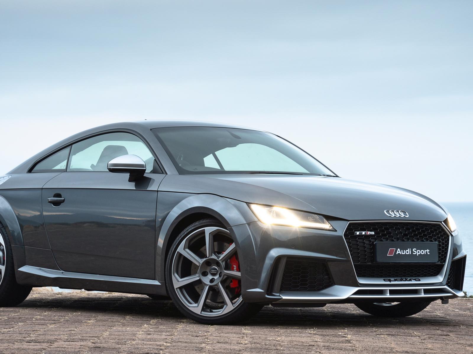 Wallpaper Silver sports car Audi TT RS, 2018 with headlights on