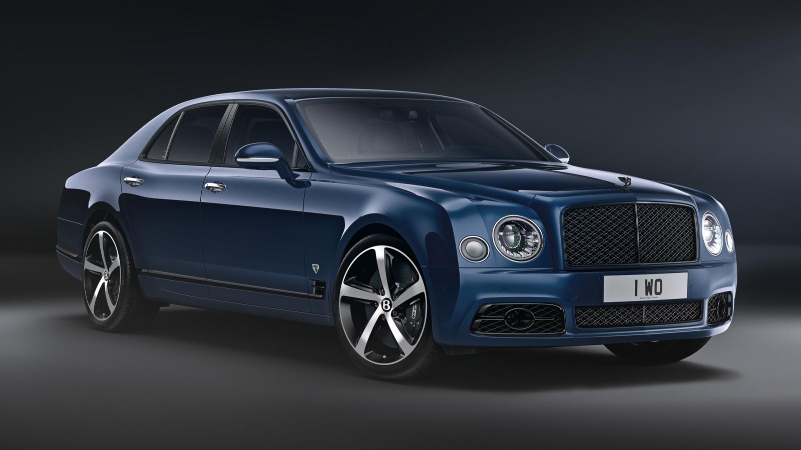 Wallpaper Blue expensive car Bentley Mulsanne, 2020 on a gray background