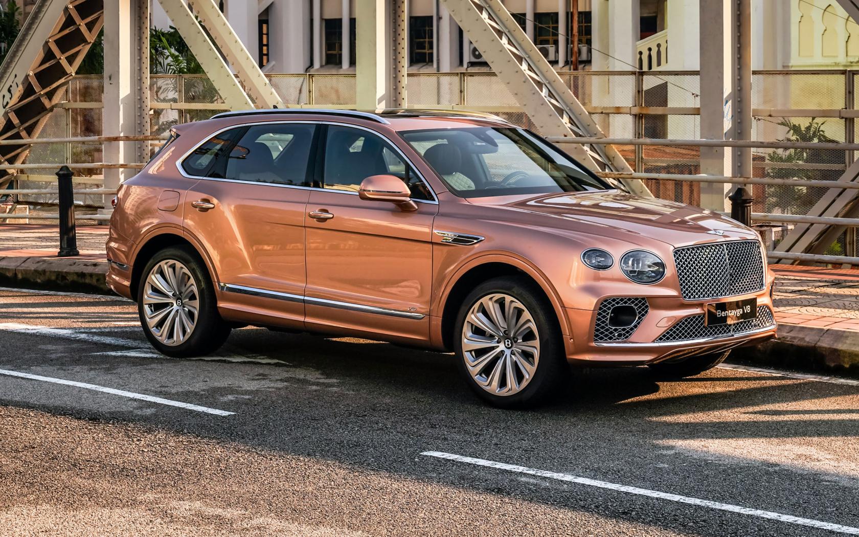 Wallpaper 2020 Bentley Bentayga V8 crossover on the bridge