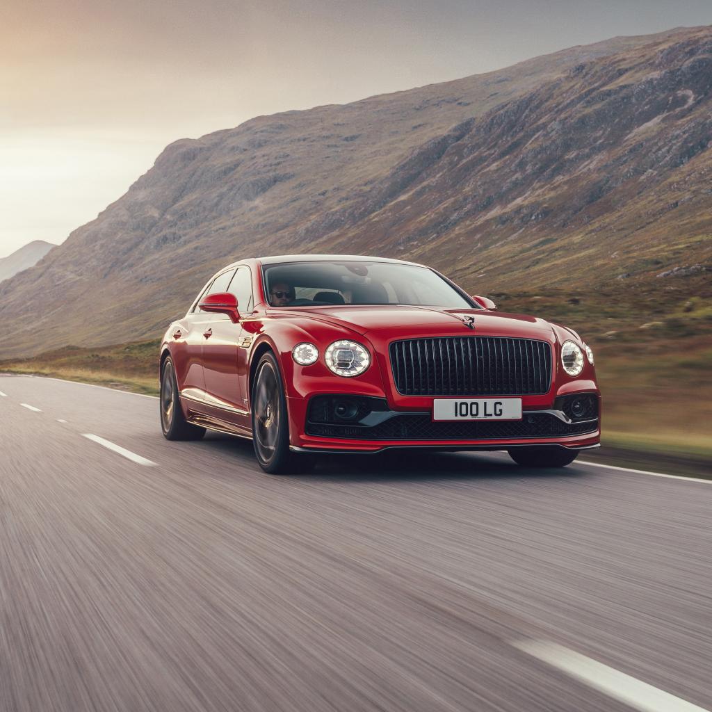 Wallpaper Red 2020 Bentley Flying Spur V8 car on the road