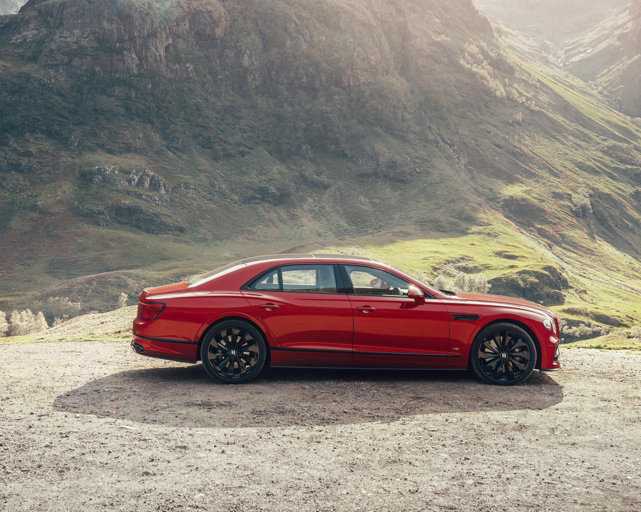 Wallpaper Red 2020 Bentley Flying Spur V8 car near the mountain