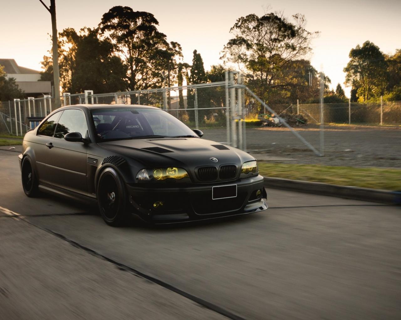 Wallpaper Black BMW M3 E46 with yellow lights