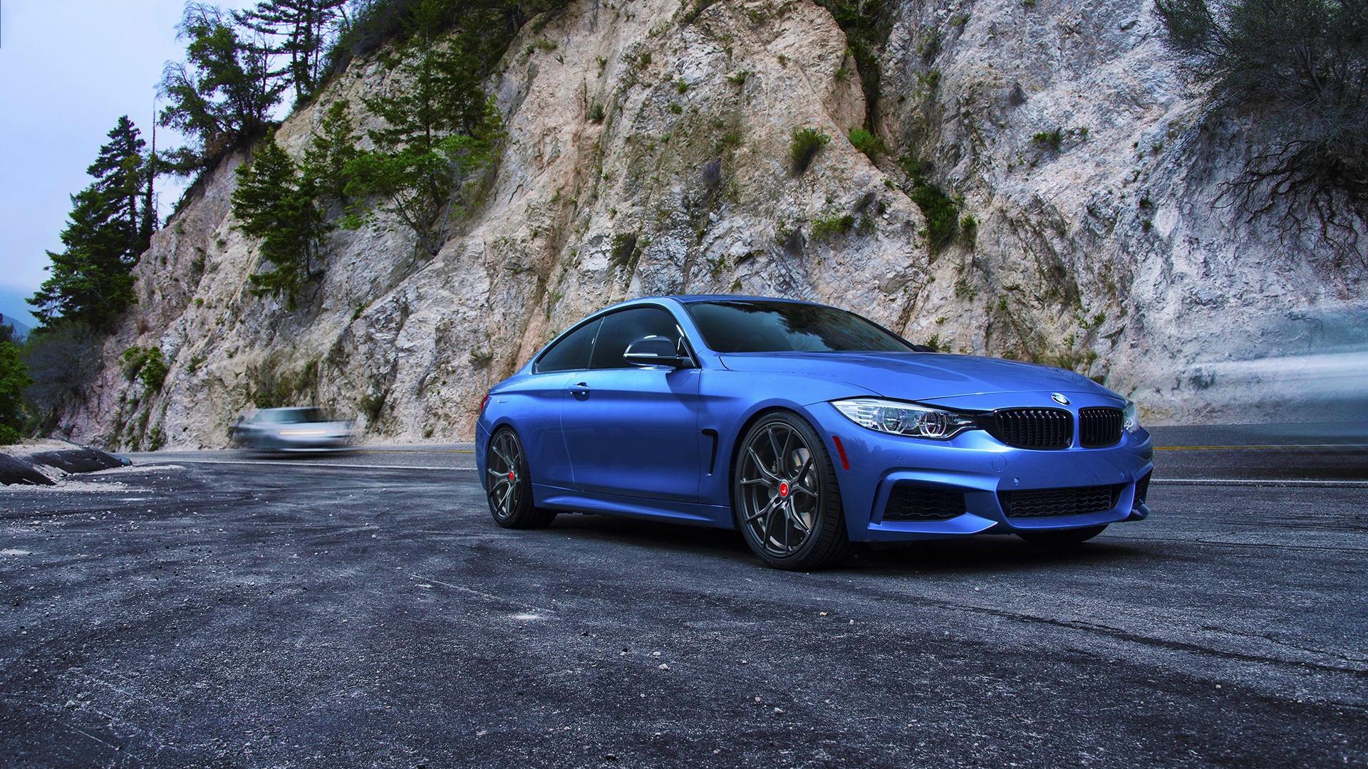 Wallpaper Blue BMW M4 against the backdrop of cliffs
