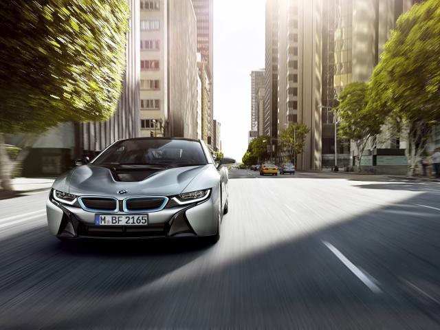 Wallpaper BMW i8 rushing on the street