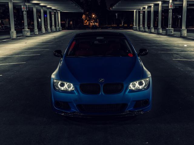 Wallpaper The blue BMW on an empty parking lot
