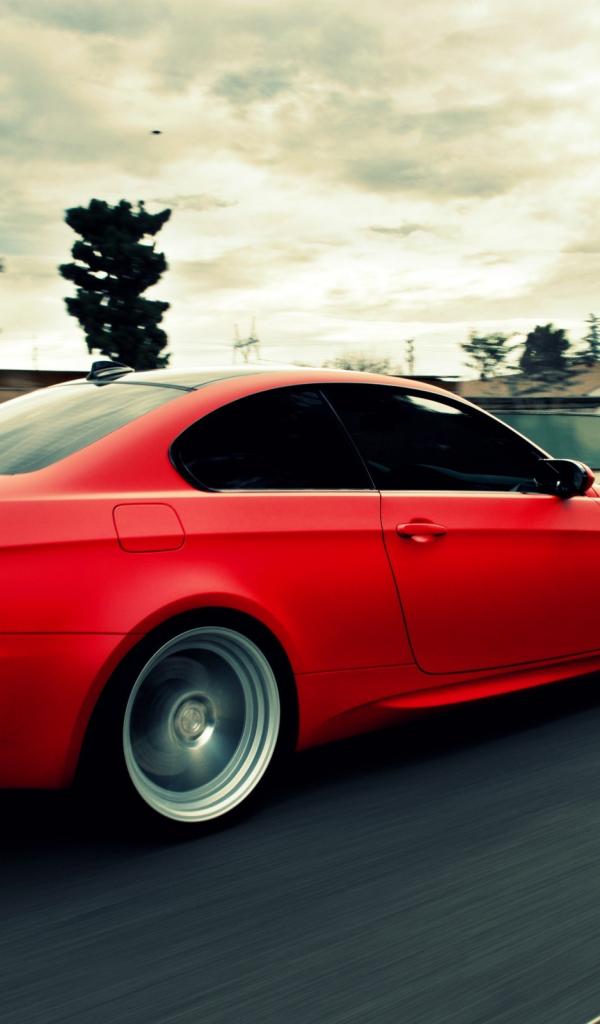 Wallpaper Quick red BMW on the highway