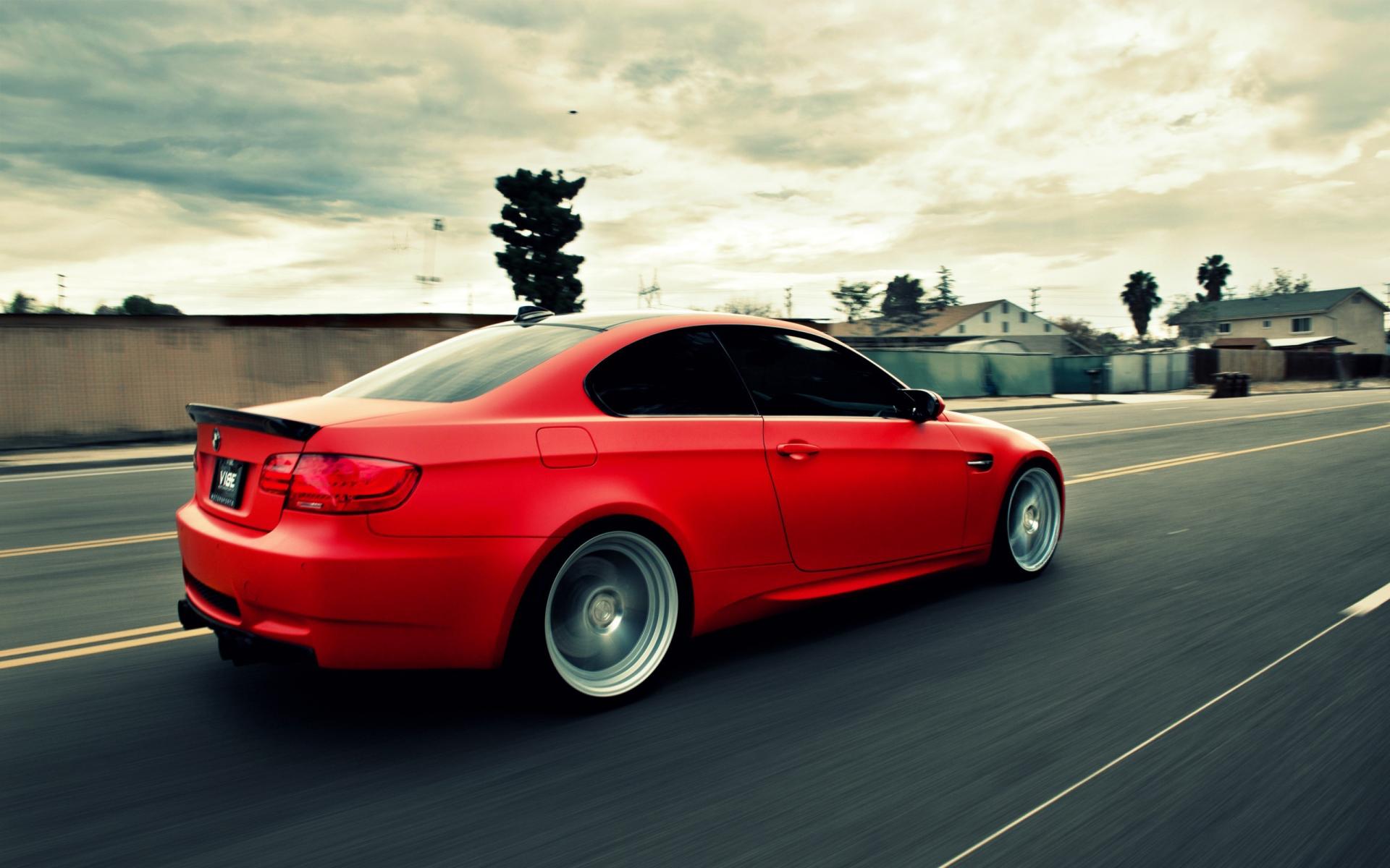 Wallpaper Quick red BMW on the highway