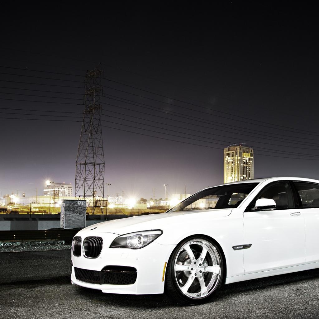 Wallpaper White BMW against the backdrop of the city at night