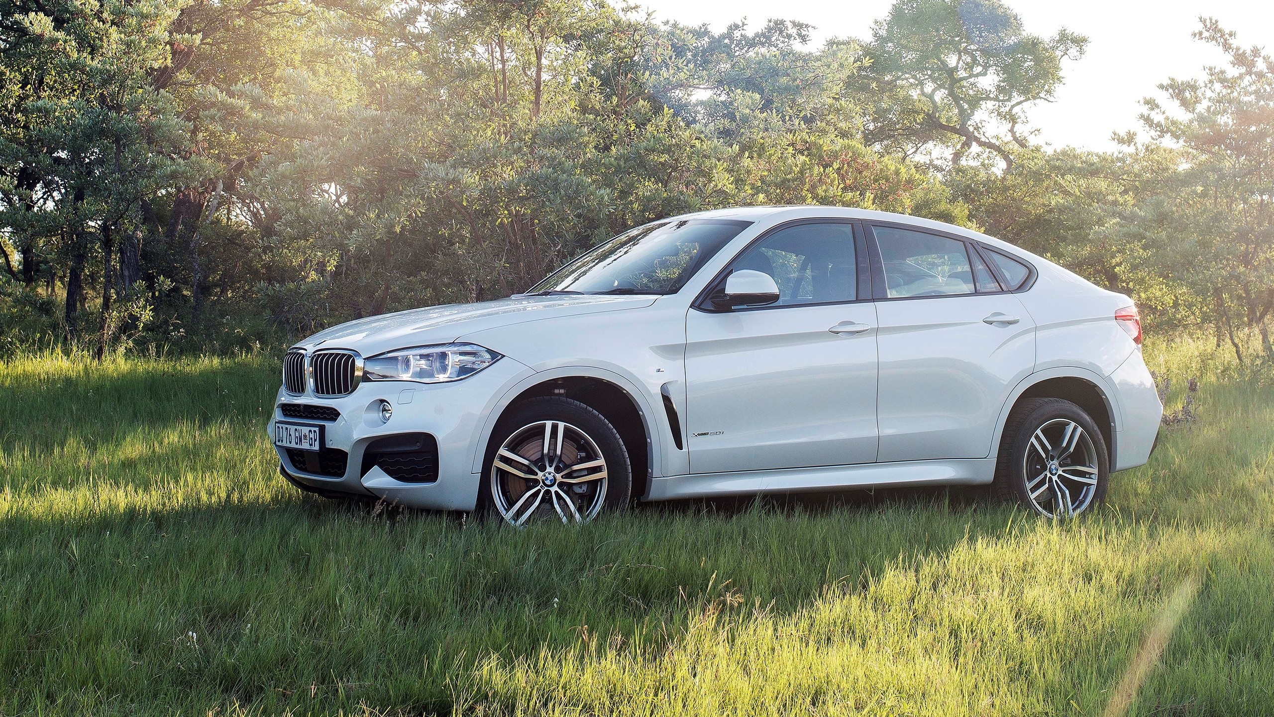 Wallpaper Four-wheel drive white BMW on the grass