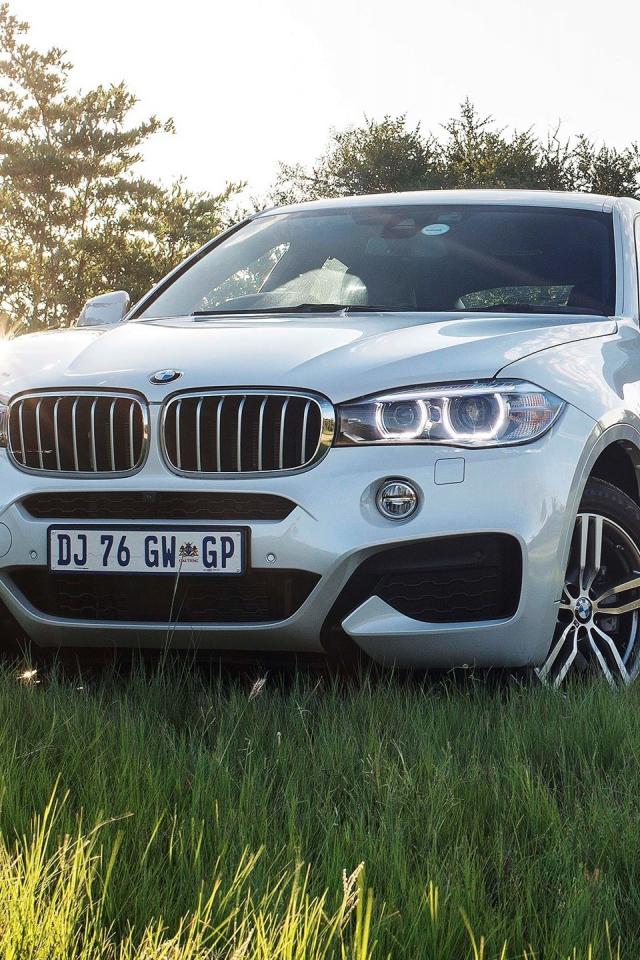Wallpaper White BMW in the field of town