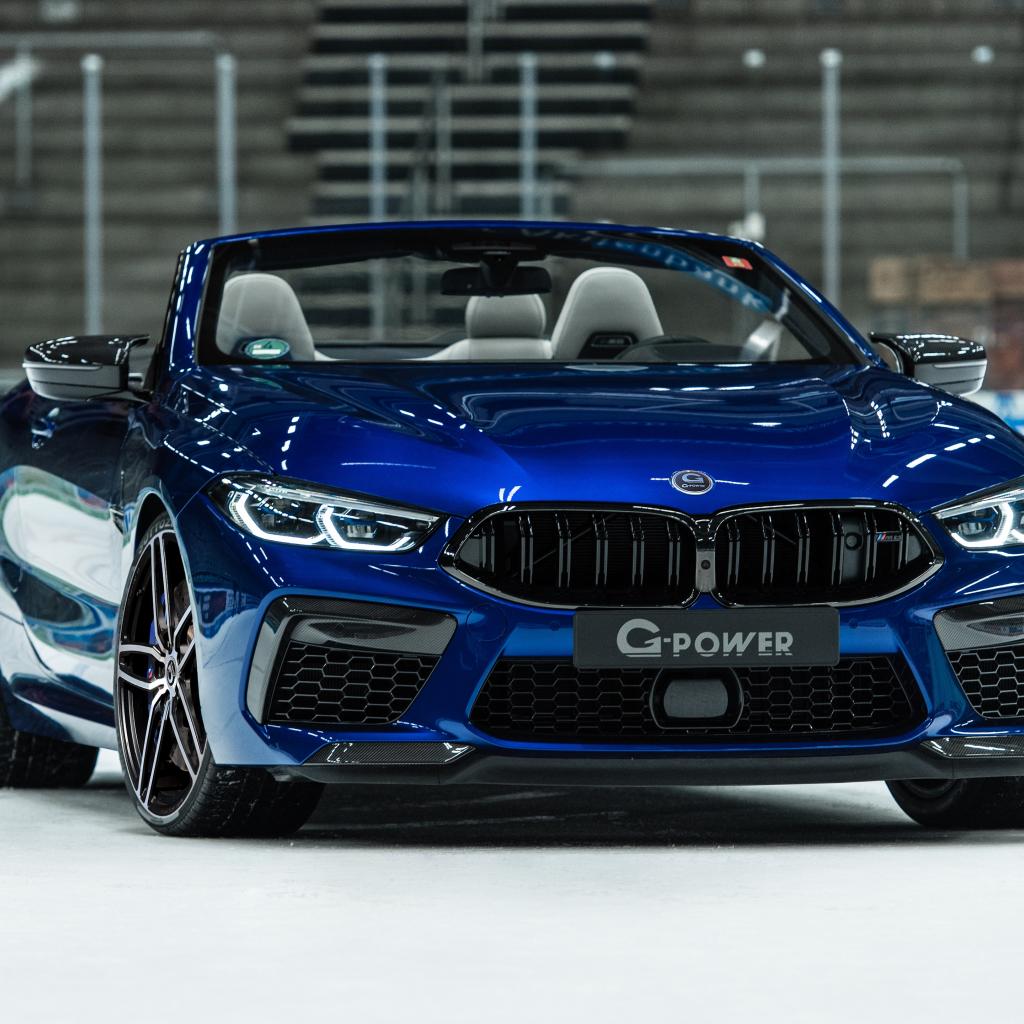 Wallpaper Blue car BMW M8 Competition Cabrio 2020 in the stadium