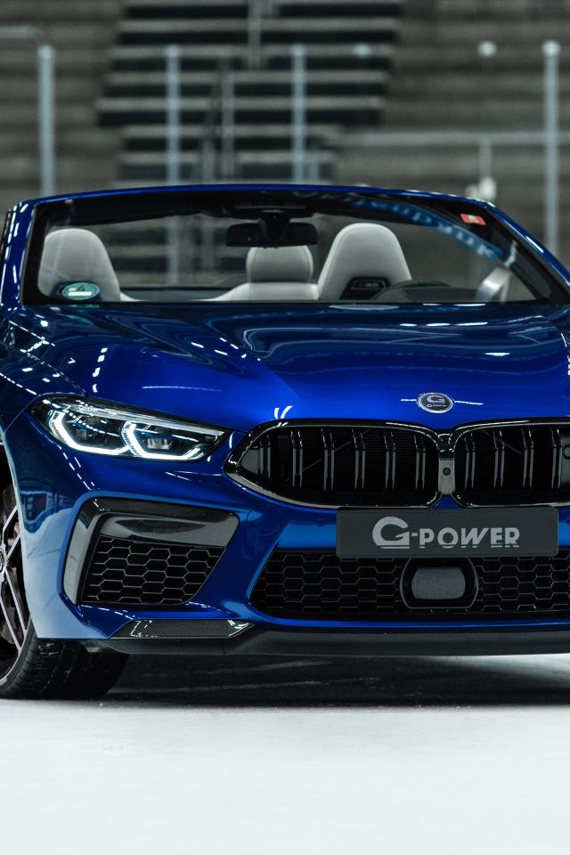 Wallpaper Blue car BMW M8 Competition Cabrio 2020 in the stadium