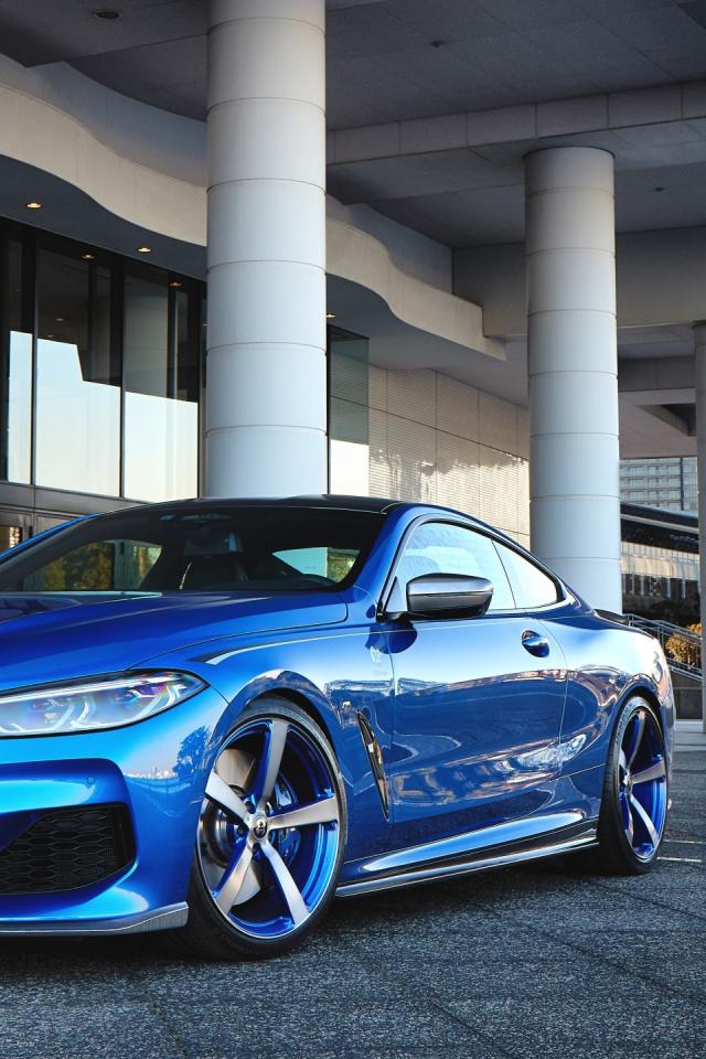 Wallpaper 2020 blue BMW M850i XDrive Coupe near the building