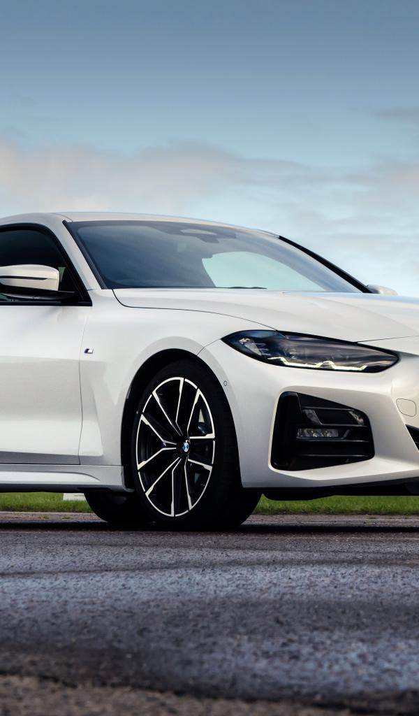 Wallpaper White 2020 BMW 420i Coupé M Sport car against the sky
