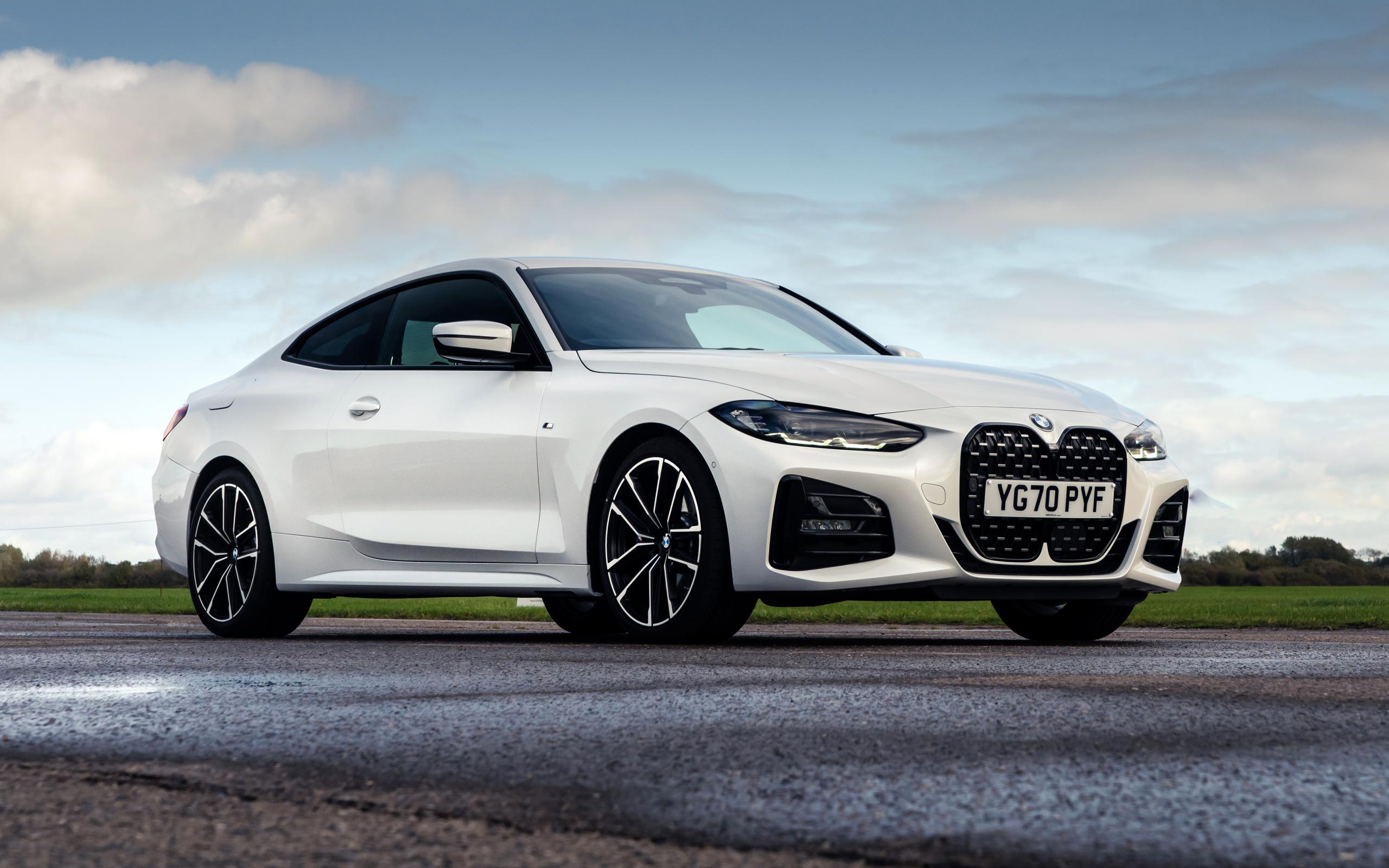Wallpaper White 2020 BMW 420i Coupé M Sport car against the sky