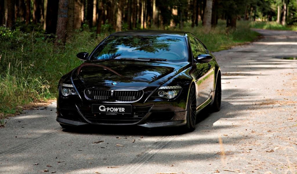 Wallpaper Black BMW M6 Hurricane RR on a country road in the woods