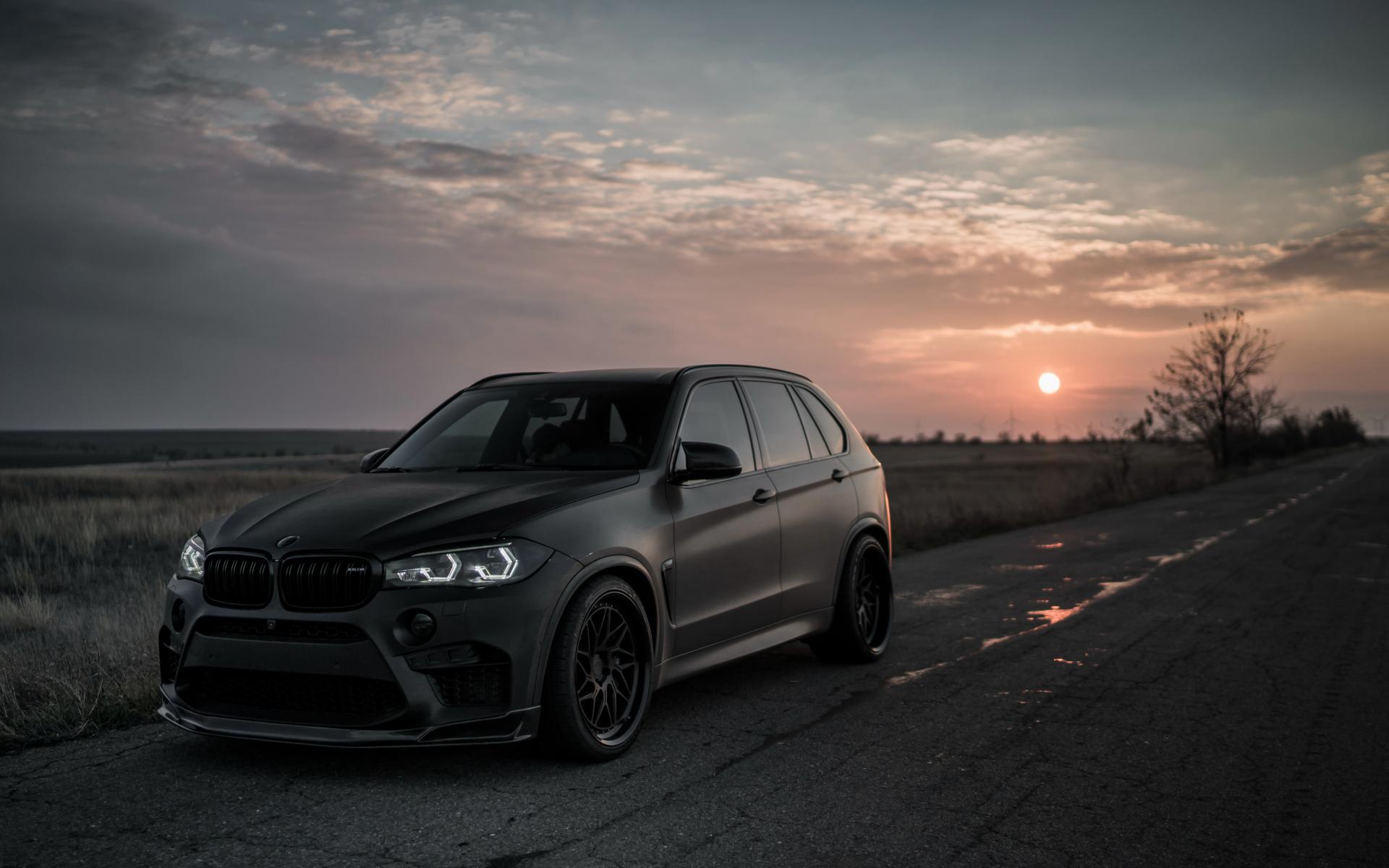Wallpaper Crossover BMW X5 M, 2018 against the sunset