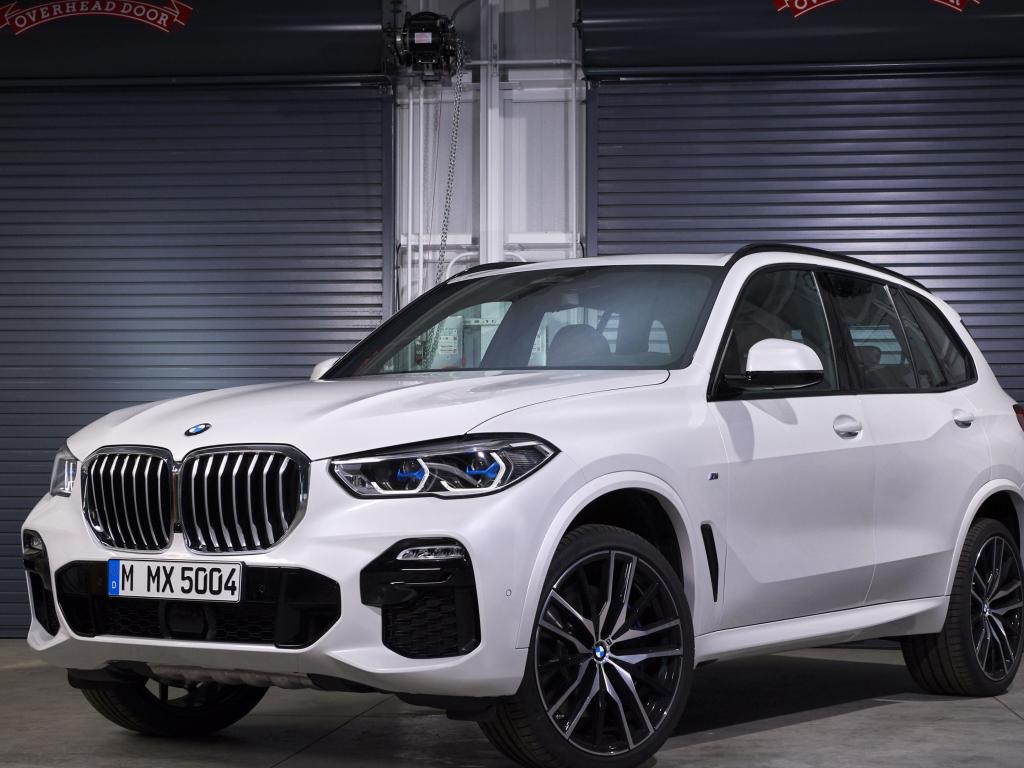 Wallpaper White BMW X5 2019 SUV in the garage
