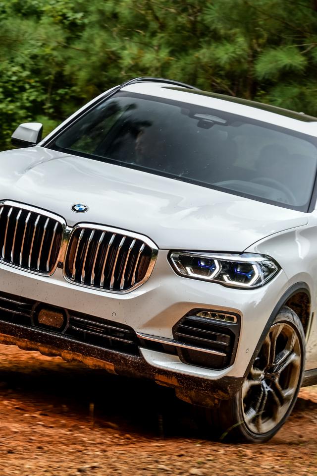Wallpaper White BMW X5 2018 car in the woods