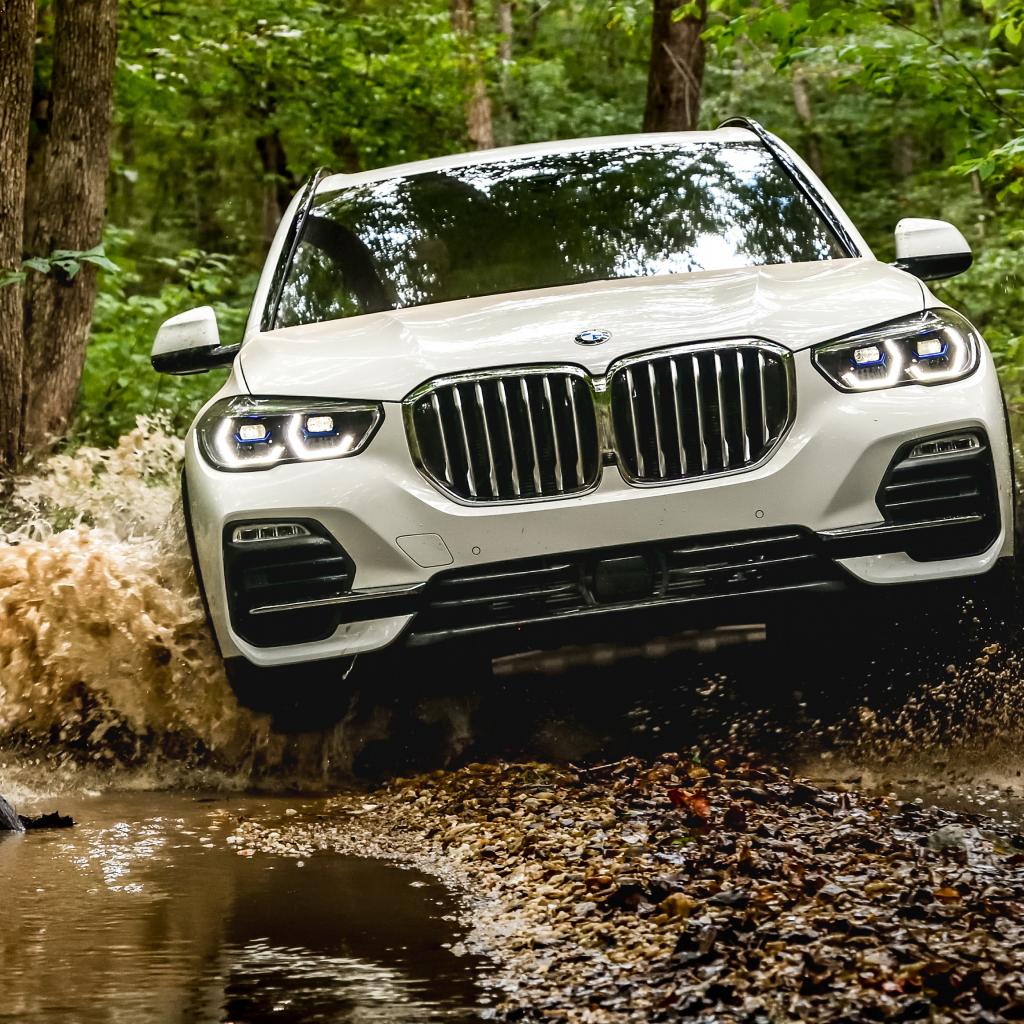 Wallpaper The 2018 BMW X5 XDrive40i SUV rides on water in the forest