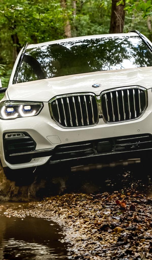Wallpaper The 2018 BMW X5 XDrive40i SUV rides on water in the forest