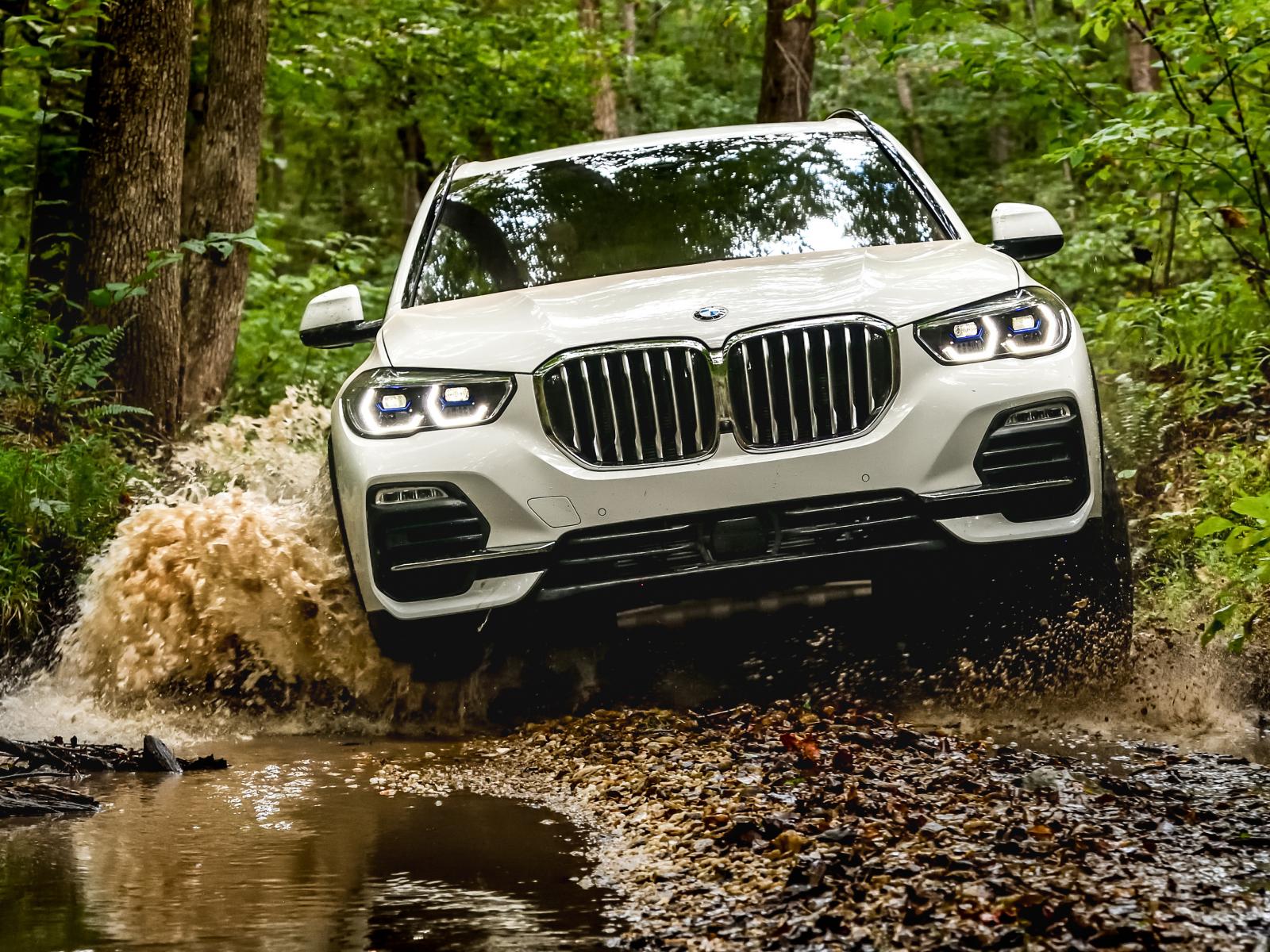 Wallpaper The 2018 BMW X5 XDrive40i SUV rides on water in the forest