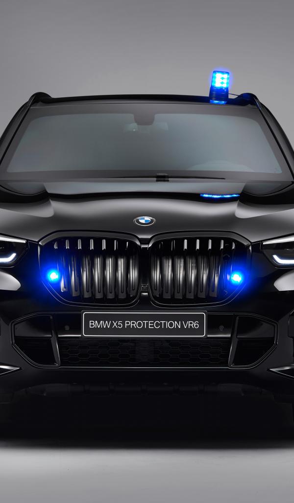 Wallpaper Black car BMW X5 Protection VR6 2019 on a gray background front view