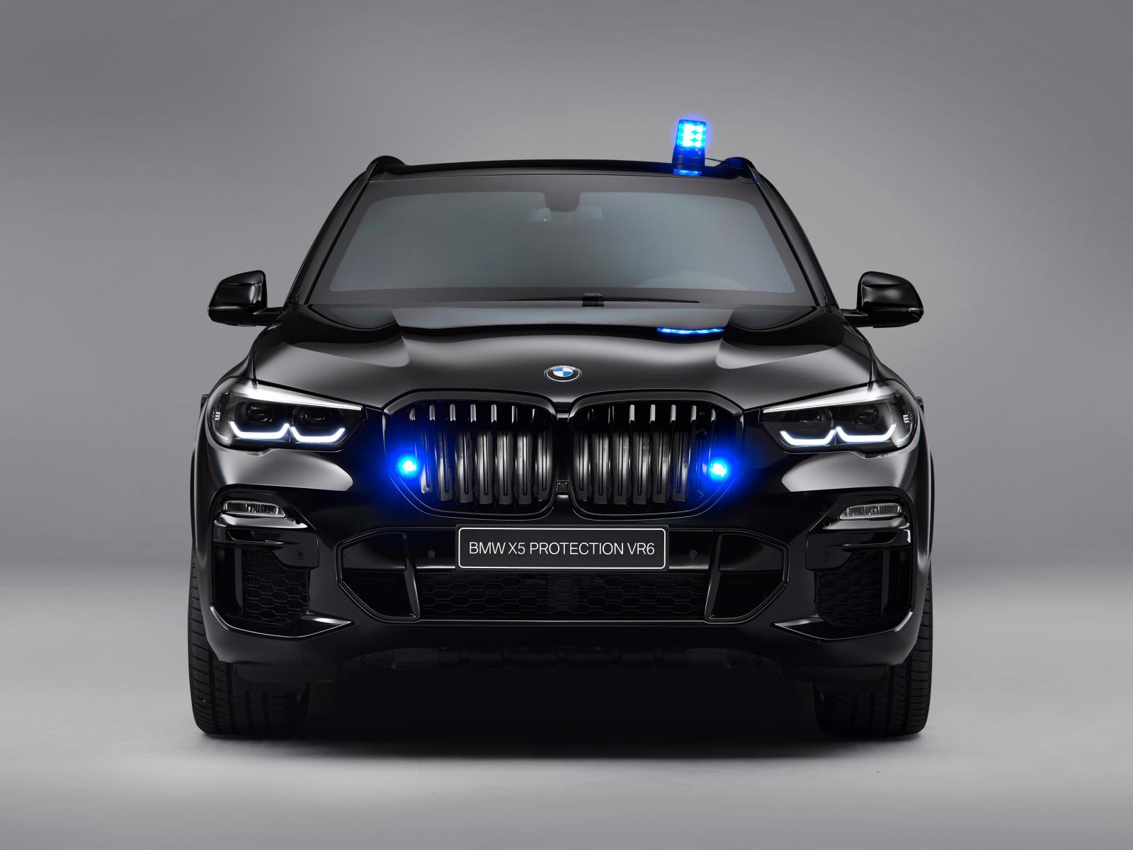 Wallpaper Black car BMW X5 Protection VR6 2019 on a gray background front view