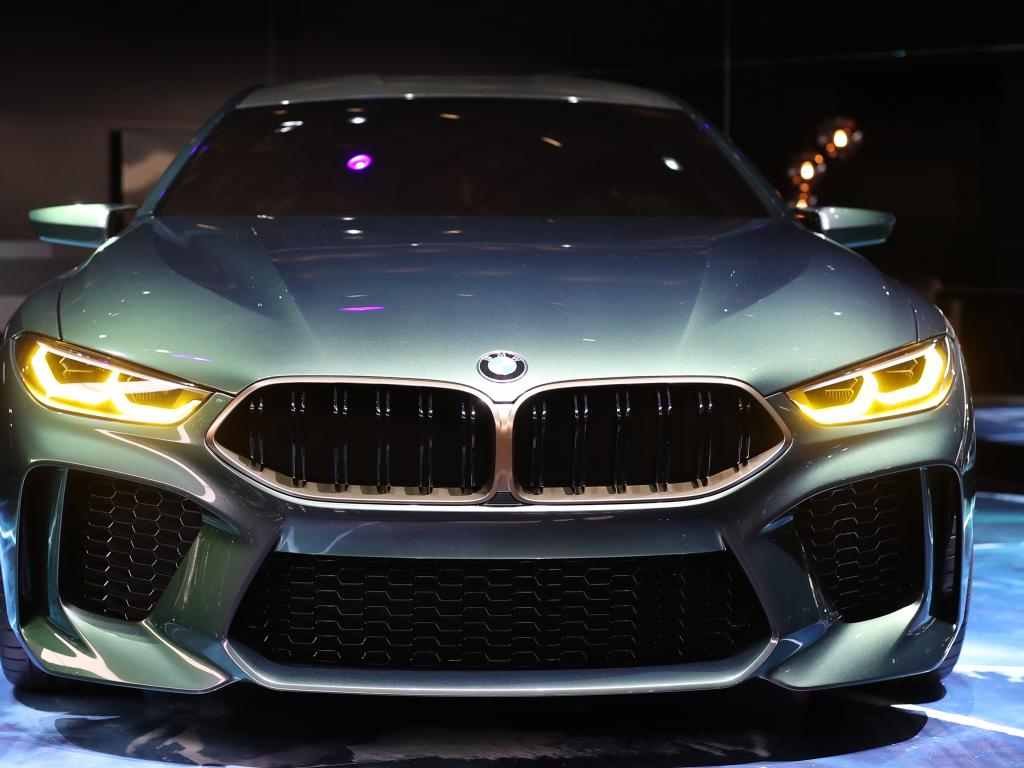 Wallpaper Silver car BMW M8 Gran Coupe, front view