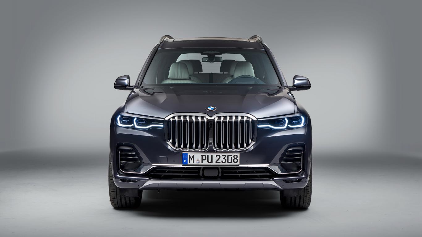 Wallpaper 2018 BMW X7 car on a gray background front view