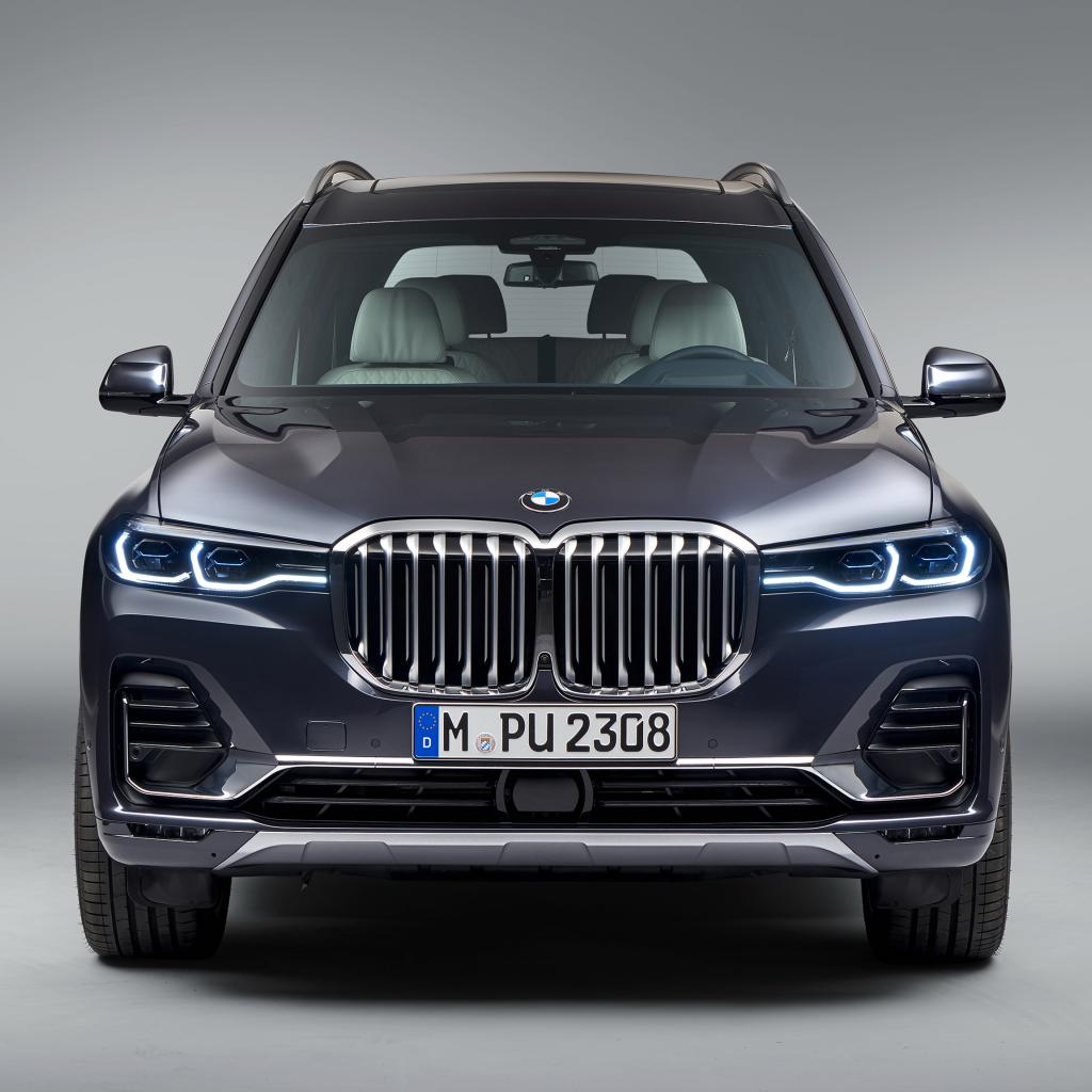 Wallpaper 2018 BMW X7 car on a gray background front view