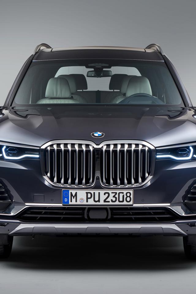 Wallpaper 2018 BMW X7 car on a gray background front view