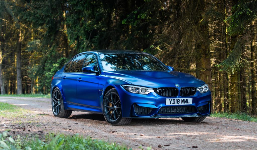 Wallpaper Blue BMW M3 car on the background of trees