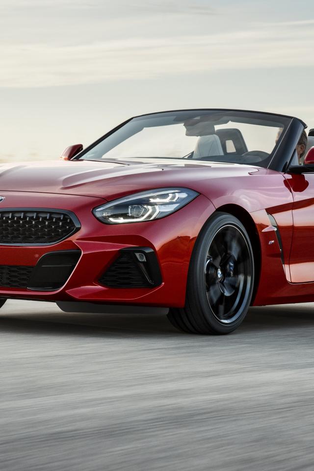 Wallpaper Red car BMW Z4 convertible on the road
