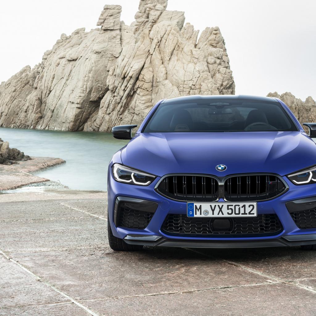 Wallpaper Blue BMW M8 Competition Coupe, 2019 near the water