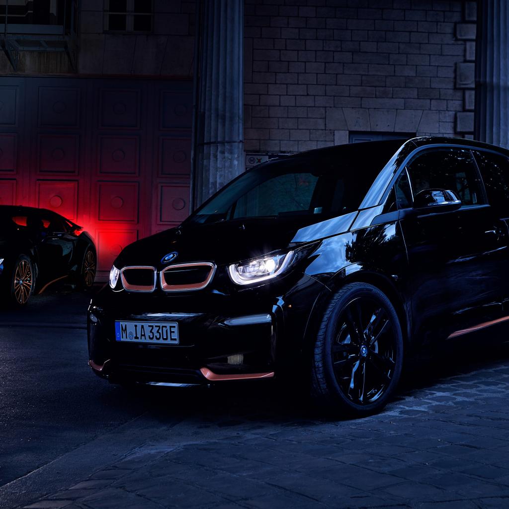 Wallpaper 2019 black BMW I8 car on the street