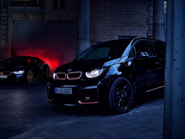Wallpaper 2019 black BMW I8 car on the street